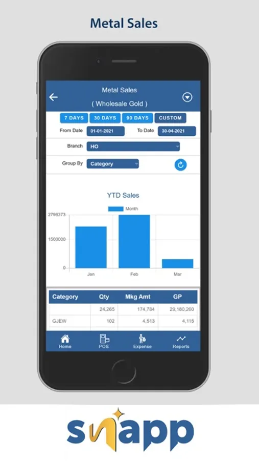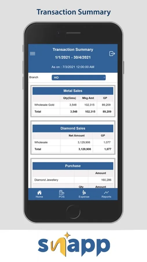 With the SnApp Mobile Application for Apple phones, you can monitor and access your Jewellry business data anywhere, anytime. You can easily view and interact with your operational data across the Retail, Wholesale, Manufacturing, Bullion and Refinery business. Share them with your colleagues, and drive priority actions across the organization in minutes.