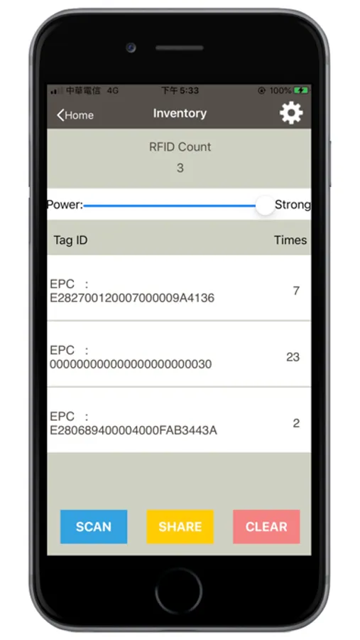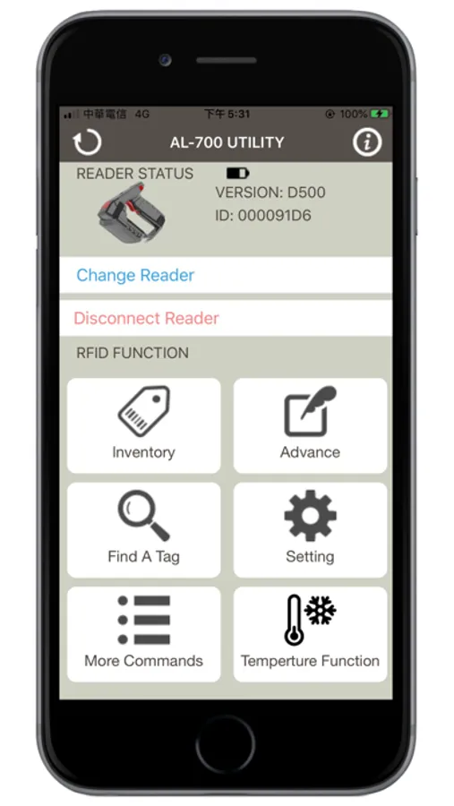 Users can scan RFID numbers through Utility hand-held device then show information to App.