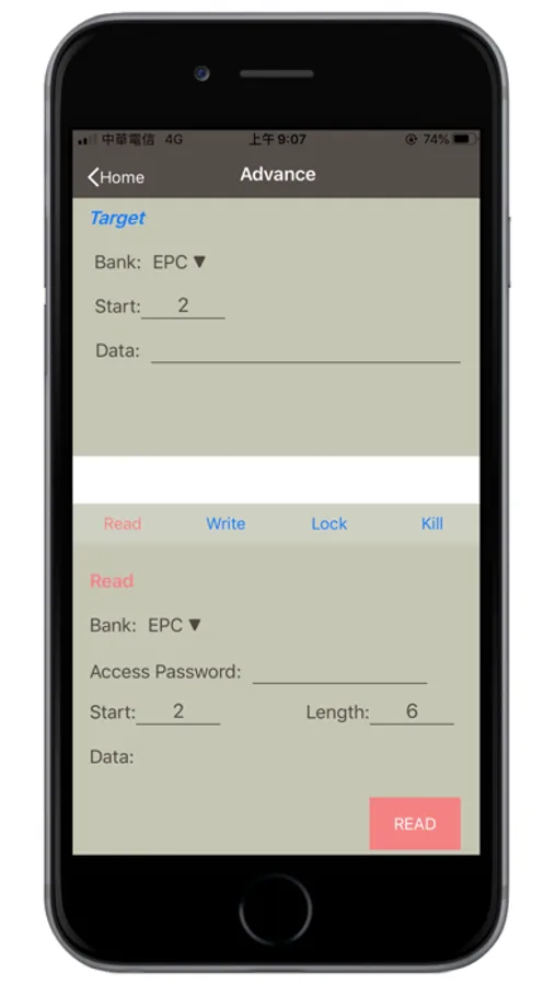 Inventory、Find a tag、Read/Write/Lock/Kill Tag、Command
