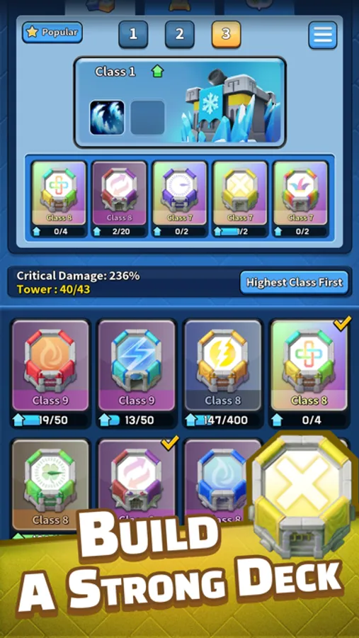 Build your strong deck of towers, blow down the rush of enemies, and earn the most trophies!