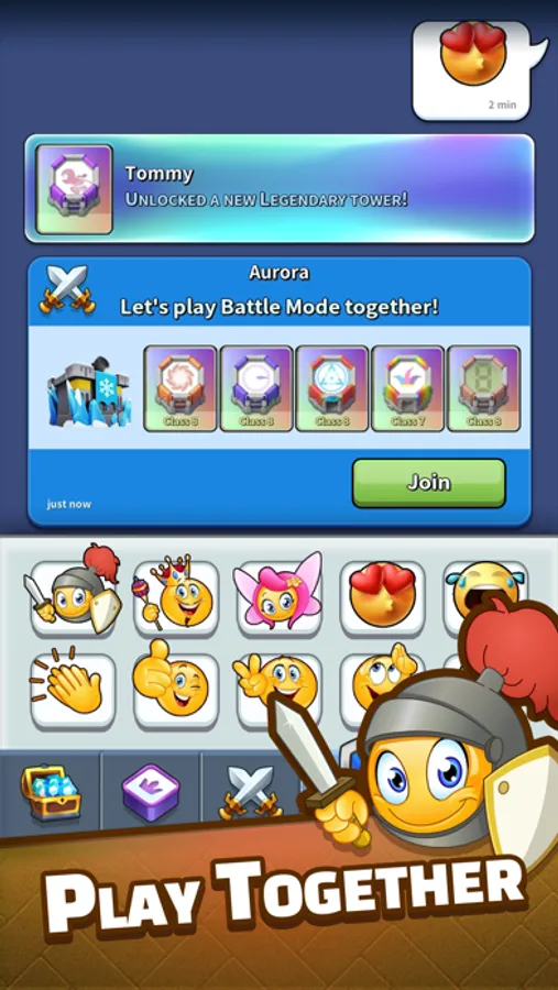 ・Co-op Mode lets you experience a co-op tower defense game. You can team up with your friend, a clan member, or a random match, and together you guard the royale road and the castle from the rush of enemy waves. Same as Battle Mode, you need to destroy as many enemies as possible, summon more towers, and complete the tower defense mission. Yet the enemies also become stronger as the rush goes on. Tower defense will get harder but stay together with your partner, stop more waves, and claim you are at the top of TD!