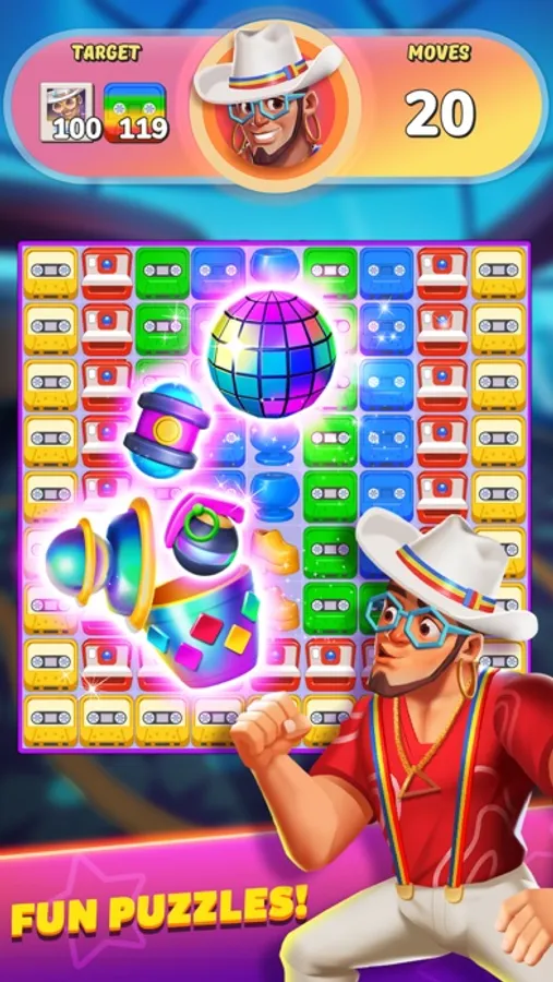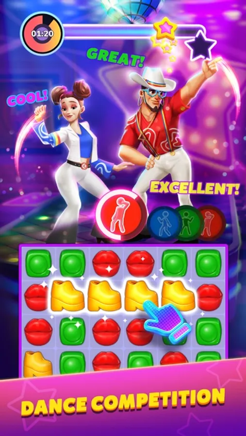 Join Brandon and Wendy on their journey to bring people together with disco! Beat match-3 levels, unlock unique areas and decorate them in a colorful disco style. What are you waiting for? Jump on the dance floor and join the disco fun!