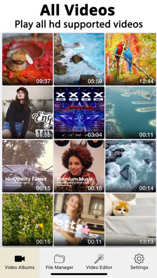 Wow!!! This video player is support all types of video format like MP4, MKV, MOV, AVI, FLV, F4V, WEBM, M2V, 3GP, M4V, MPG, MPEG, OGV, 3G2, OGM, MTS, VOB, OGG, M2TS, TS, RM, ASF, HEVC, F4A, DIVX, MXF with Video Editor.