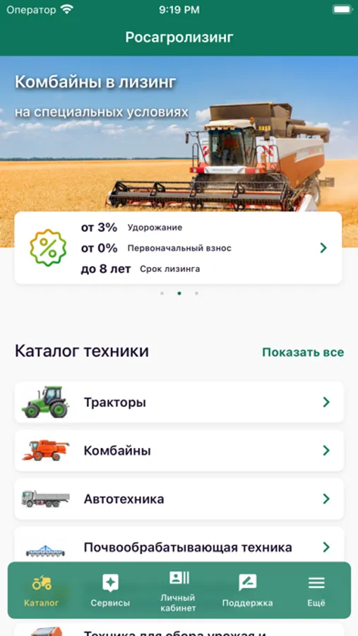 Мобильное приложение АО «Росагролизинг» - онлайн-каталог сельхозтехники и оборудования.