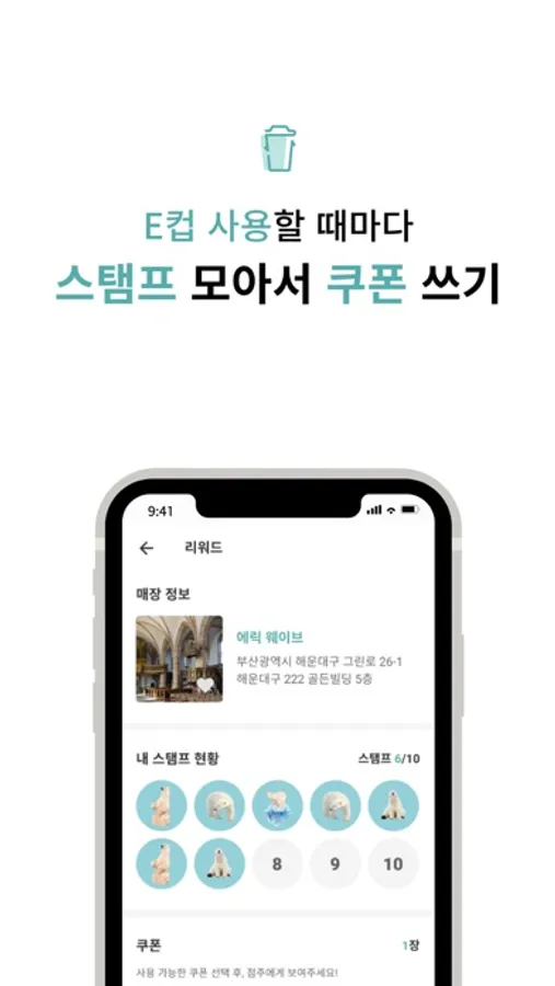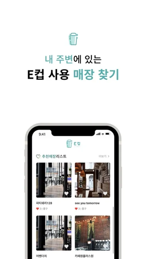 친환경 생활은 불편하고 비싸다는 고정관념을 깨고 누구나 쉽고 편리하게 친환경 생활을 할 수 있는 바탕을 만들어 나가기 위해 탄생한 E컵 서비스