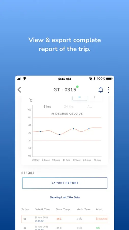 B Medical Systems Connect equips you with a comprehensive report of the temperature tracking throughout the trip with the given frequency. If you find any feature not working properly, please