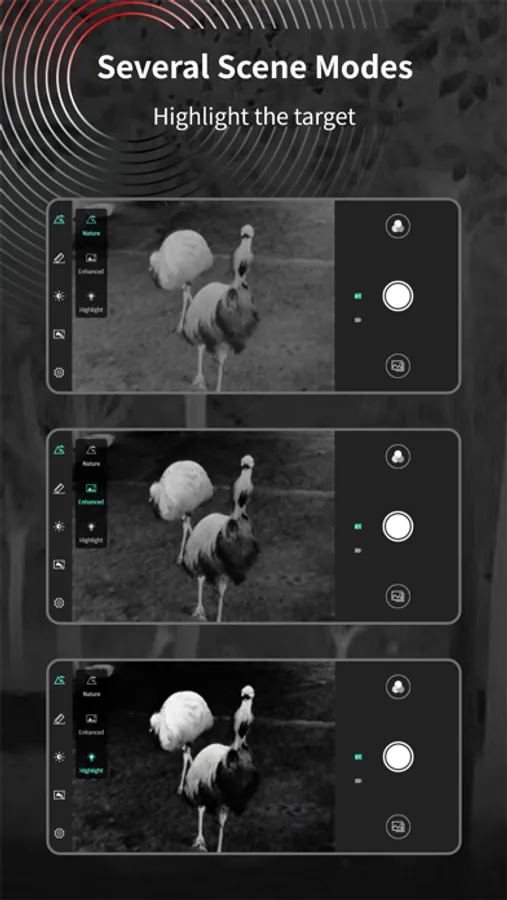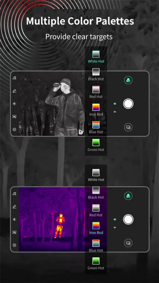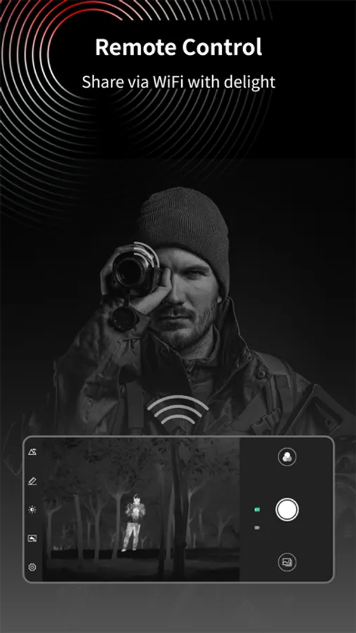 TargetIR, Thermal imaging night vision exclusive mobile terminal APP. By connecting the device to Wi-Fi, users can preview high-definition images of the thermalimager in real time and remotely control it with full functions. In addition to taking photos and recording videos, this APP can also remotely obtain the image library of the thermal imager and share it with other application platforms at any time. It is a mobile APP that truly realizes full-function remote transmission and control.