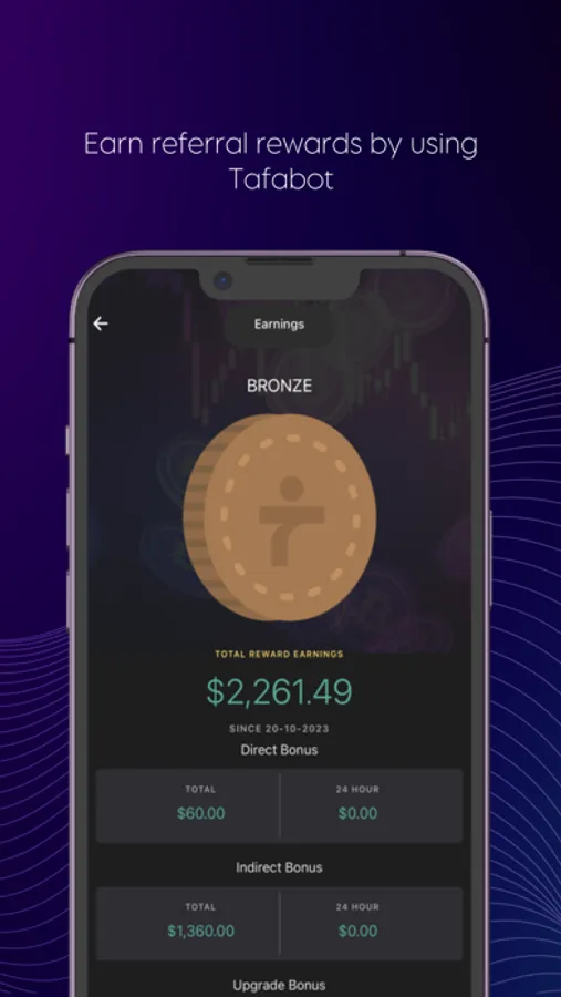 With the TAFABOT reward system, you get to earn from your referrals trading profits up till the 15th downlines.