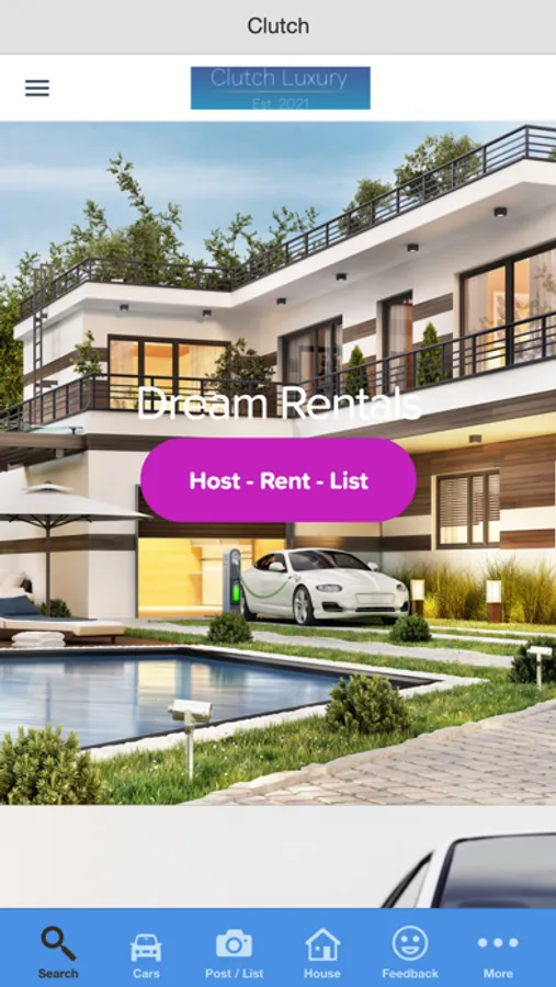 Clutch Luxury Rentals on demand get 24/7 access. The dream is over it's time to start living it! Download our app tap and rent a piece of luxury or post your car, house, boat. Get more Profit off your listing when you choose our platform we charge less fees no stress!