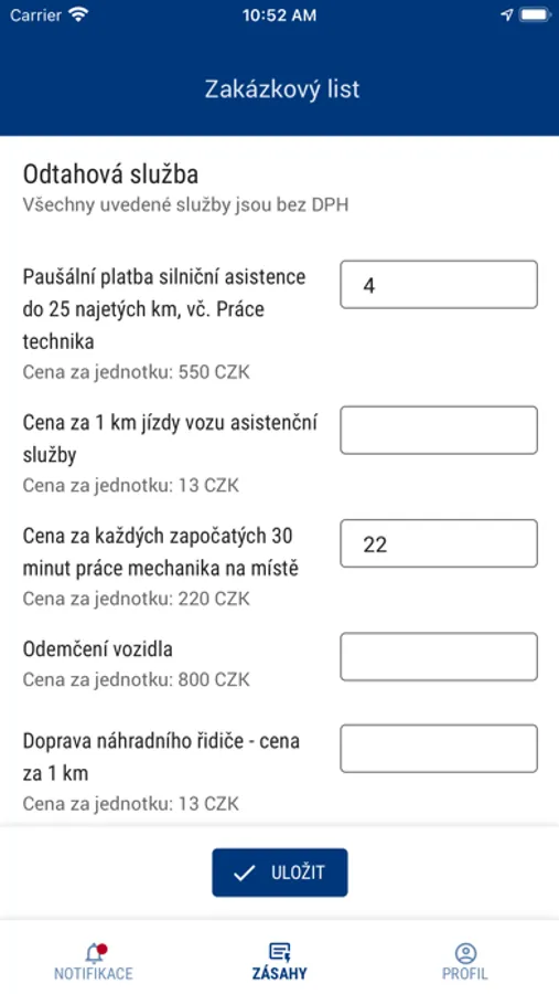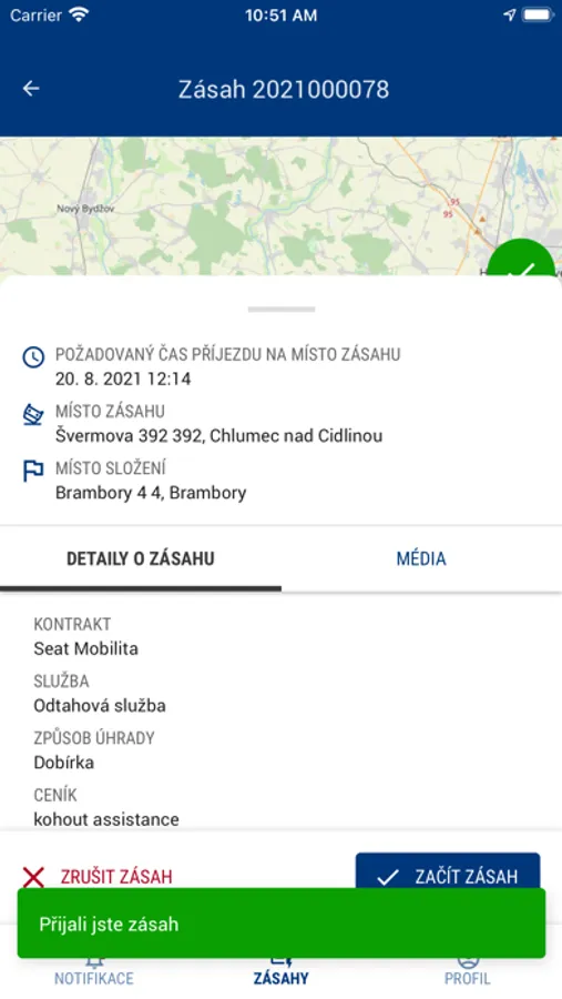 Aplikace pro obsluhu asistenčních klientských zásahů smluvních asistenční partnerů UAMK. Dispečer / Řidič