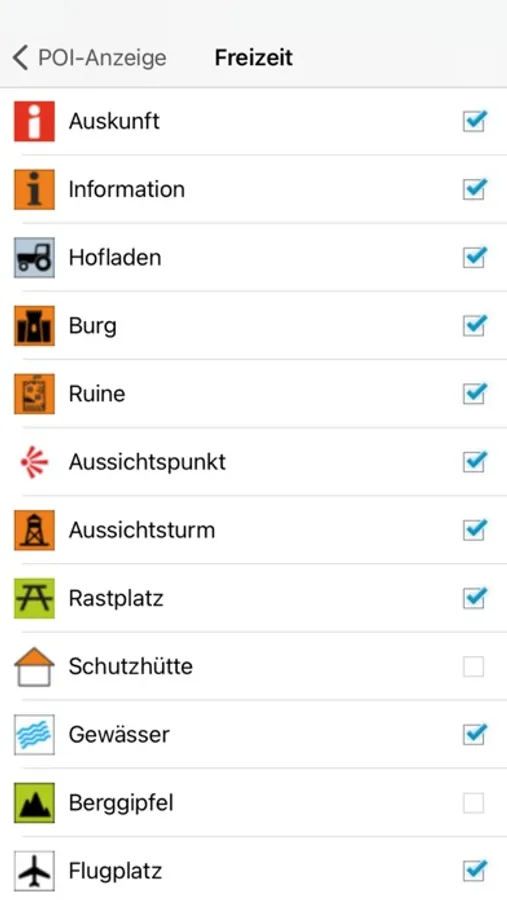 Um die Karte übersichtlich zu halten, können Inhalte ausgedünnt und die Darstellung der POIs in den Einstellungen individuell angepasst werden. Je nach Schwerpunkt oder Anwendungsfall können Sie festlegen was angezeigt wird.