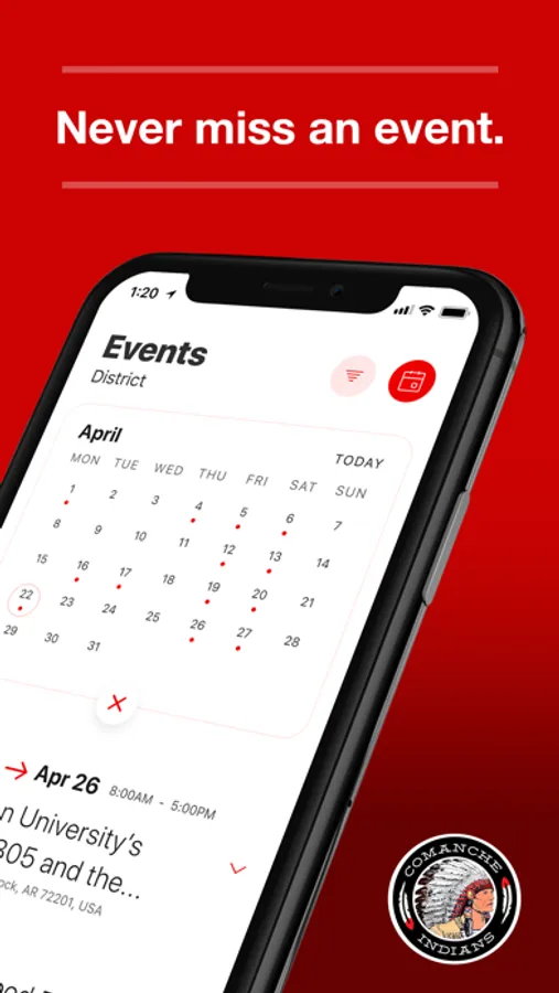 The event section shows a list of events throughout the district. Users can add an event to your calendar to share the event with friends and family with one tap.