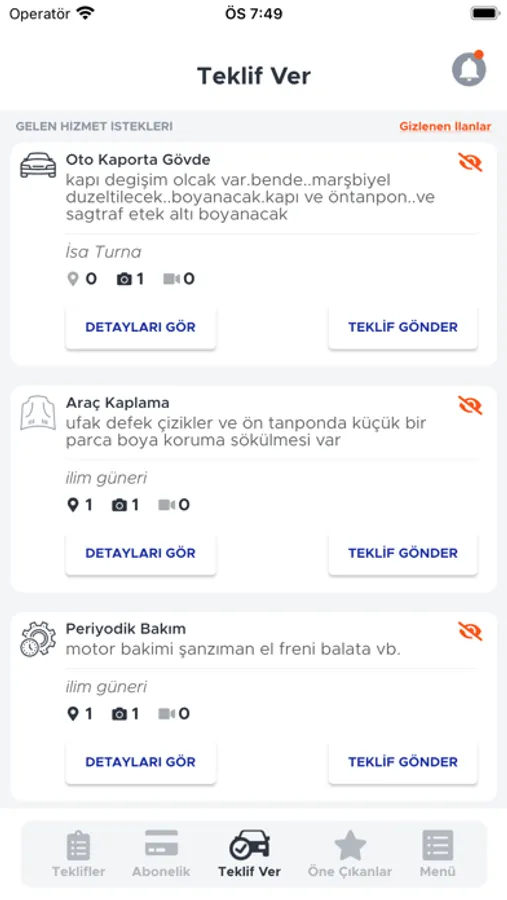Hizmet kategorileri :