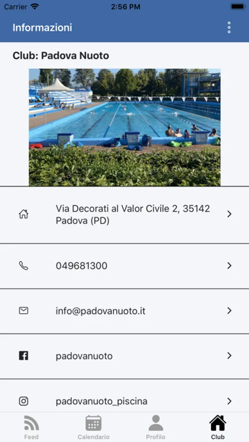 L'applicazione che vi tiene sempre aggiornati con il mondo Padova Nuoto. Segui tutte le novità del centro, consulta gli orari dei corsi, prenota le tue attività, rimani sempre in contatto con i tuoi amici, invitali a nuotare con te. Non perdete nulla della vostra piscina a Padova!