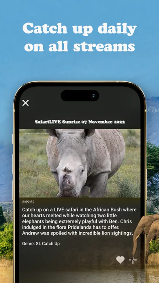 From seven awe inspiring wilderness locations across Africa join us for 14 hours of LIVE wildlife experiences everyday, 365 days a year. Feel a connection with the majestic and the beautiful as we virtually transport you into the wilderness.