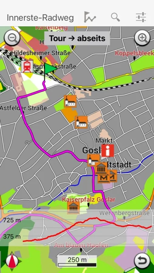 In diesen Tourverlauf ist nicht nur die Strecke vom Innerste-Sprung aus dem Oberharz bis ins Leinetal eingebunden; auch die ersten Weltkulturerben dieser Tour wurden durch die Wahl des Startpunkts in Goslar mitberücksichtigt.