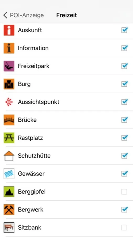 Um die Karte übersichtlich zu halten, können Inhalte ausgedünnt und die Darstellung der POIs in den Einstellungen individuell angepasst werden. Je nach Schwerpunkt oder Anwendungsfall können Sie festlegen was angezeigt wird.