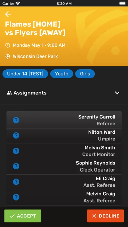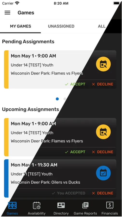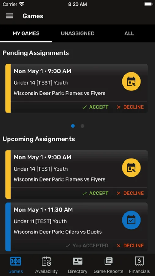 Your referees and umpires can use the mobile app to manage their availability, accept or decline game assignments, and communicate using our messaging functionality. Organziations in the United States can use Assignr to pay officials using Direct Deposit. Referees and umpires can provide W9 and banking details, submit game reports, and access a directory of other officials within your organization.