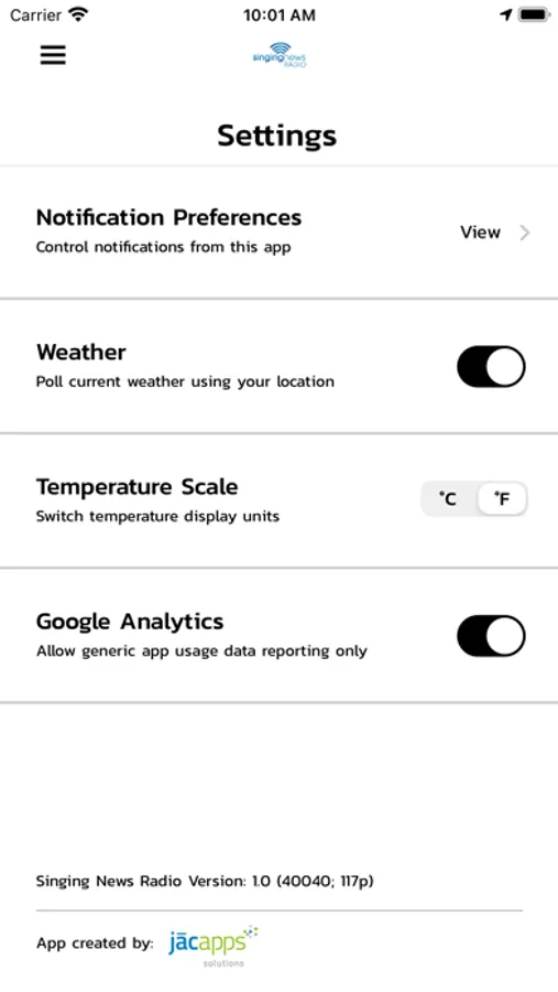 You decide when you want to listen, and when you want to browse by turning the live stream off or on within the app. Get what you want off the radio with the new Singing News Radio App.
