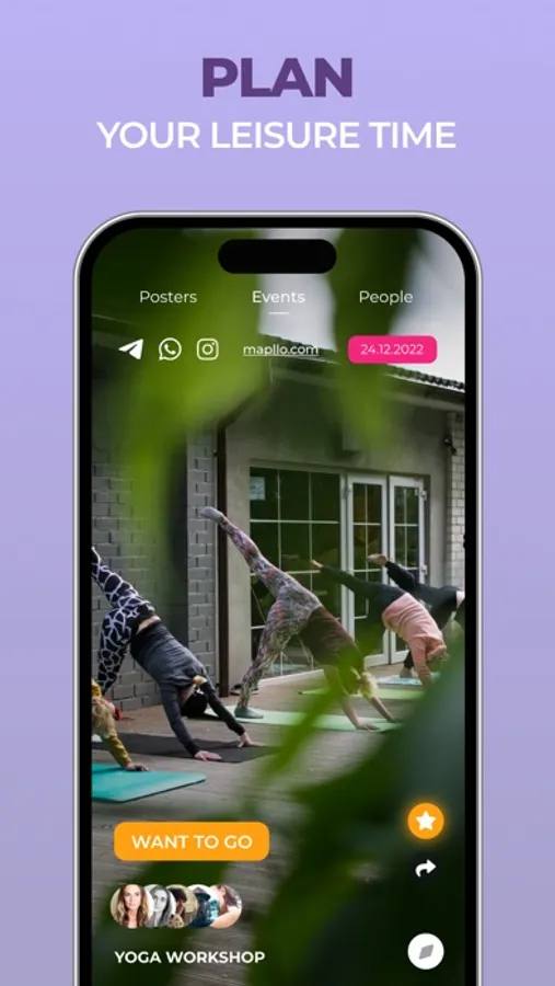 Join our new community, download Mapllo, find people close to you and find out how to spend your time choosing from the coolest events and interesting places in your city.