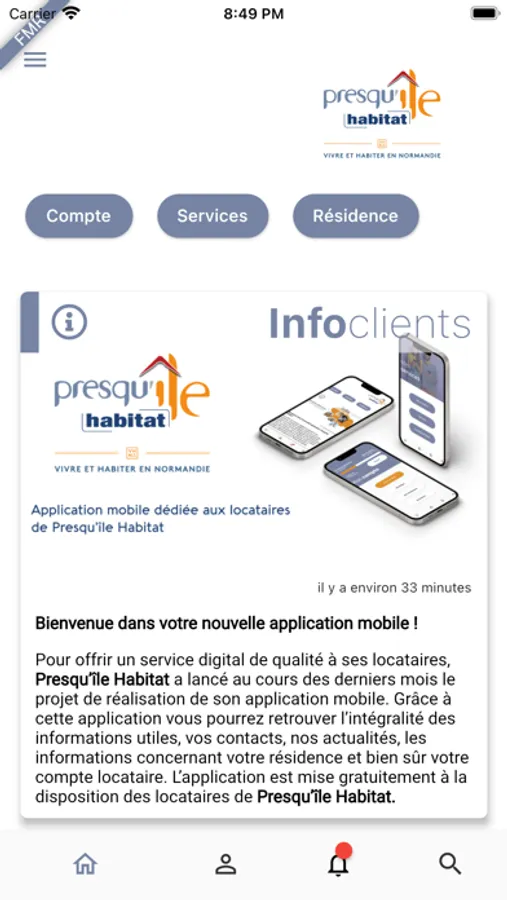 Locataire de Presqu'île Habitat ? Accédez à votre espace locataire depuis votre mobile.
