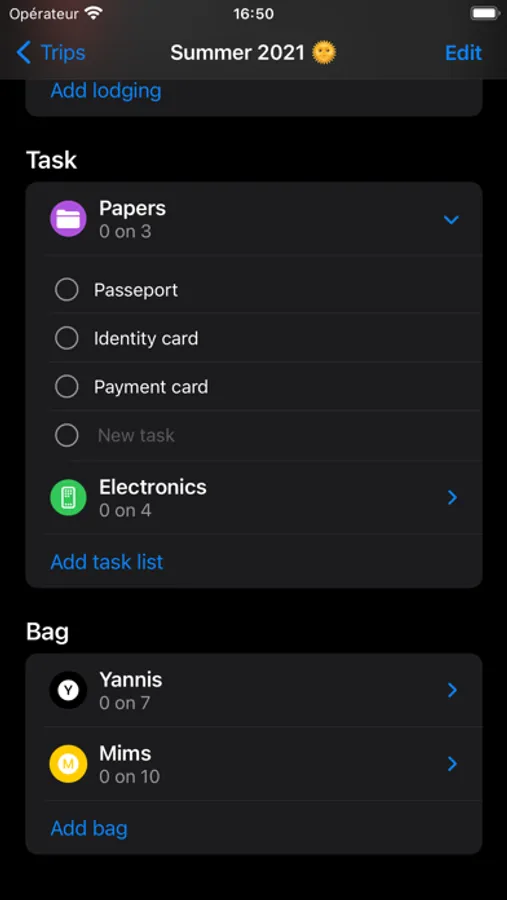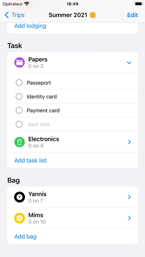 Thanks to the "Task" and "Suitcase" sections, create as many shortlists and suitcases as you need to make sure you don't forget anything!