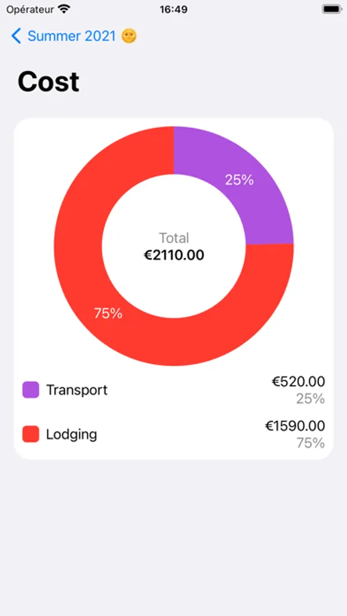 You can also have a global vision of the travel budget by filling in the costs.