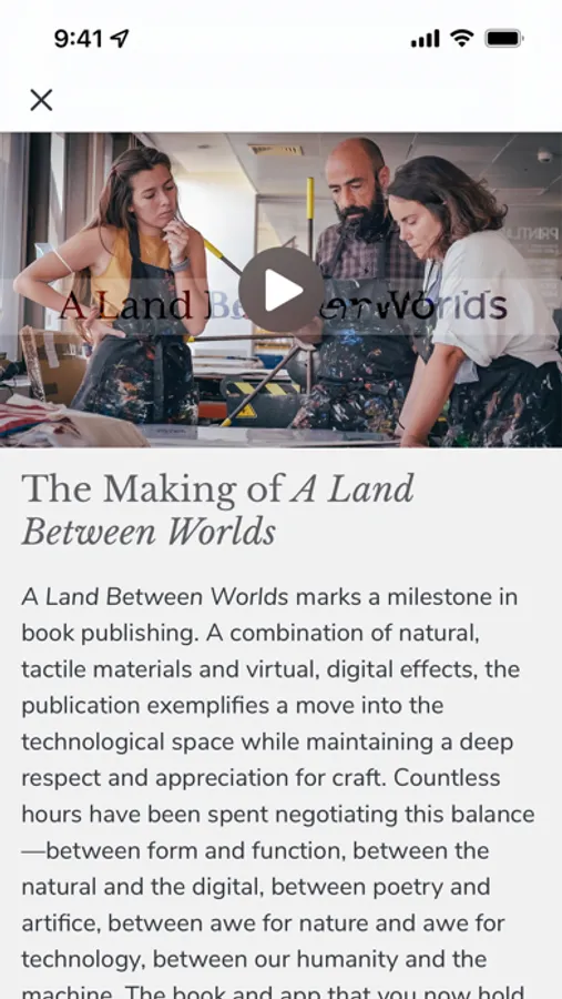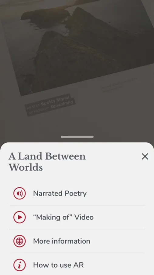 This optional app—to be used in conjunction with the A LAND BETWEEN WORLDS poetry book—features a number of interactive uses, including augmented reality and voice-over narrated poetry by the book’s author.