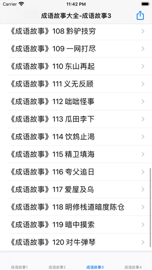 《成语故事》01 望梅止渴.mp3《成语故事》02 秋毫无犯.mp3《成语故事》03 塞翁失马.mp3 《成语故事》04 羿射九日.mp3《成语故事》05 指鹿为马.mp3《成语故事》06 映雪读书.mp3《成语故事》07 游刃有余.mp3《成语故事》08 惟我独尊.mp3《成语故事》09 天花乱坠.mp3《成语故事》10 杨犬吠主.mp3《成语故事》11 三人成虎.mp3《成语故事》12 曲突徒新.mp3《成语故事》13 杞人忧天.mp3《成语故事》14 千里送鹅毛.mp3《成语故事》15 七步成诗.mp3《成语故事》16 南柯一梦.mp3《成语故事》17 千钧一发.mp3《成语故事》18 名落孙山.mp3《成语故事》19 磨杵成针.mp3《成语故事》20 鸡犬升天.mp3《成语故事》21 乐不思蜀.mp3《成语故事》22 老马识途.mp3《成语故事》23 惊弓之鸟.mp3《成语故事》24 凿壁借光.mp3《成语故事》25 见怪不怪.mp3《成语故事》26 螳螂捕蝉黄雀在后.mp3《成语故事》27 众志成城.mp3《成语故事》28 运斤成风.mp3《成语故事》29 祸起萧墙.mp3《成语故事》30 以暴易暴.mp3《成语故事》31 一帆风顺.mp3《成语故事》32 欣欣向荣.mp3《成语故事》33 鼯鼠学技.mp3《成语故事》34 相敬如宾.mp3《成语故事》35 吴市吹箫.mp3《成语故事》36 完璧归赵.mp3《成语故事》37 负荆请罪.mp3《成语故事》38 蜀犬吠日.mp3《成语故事》39 高山流水.mp3《成语故事》40 家徒四壁.mp3《成语故事》41 河东狮吼.mp3《成语故事》42 金玉其外.mp3《成语故事》43 退避三舍.mp3《成语故事》44 老生常谈.mp3《成语故事》45 洛阳纸贵.mp3《成语故事》46 狡兔三窟.mp3《成语故事》47 投笔从戎.mp3《成语故事》48 两袖清风.mp3《成语故事》49 沧海一粟.mp3《成语故事》50 取而代之.mp3《成语故事》51 势如破竹.mp3《成语故事》52 枕戈待旦.mp3《成语故事》53 江郎才尽.mp3《成语故事》54 鸡鸣狗盗.mp3《成语故事》55 众叛亲离.mp3《成语故事》56 对症下药.mp3《成语故事》57 四面楚歌.mp3《成语故事》58 半途而废.mp3《成语故事》59 约法三章.mp3《成语故事》60 一日千里.mp3《成语故事》61 不可救药.mp3《成语故事》62 车水马龙.mp3《成语故事》63 不耻下问.mp3《成语故事》64 四分五裂.mp3《成语故事》65 功亏一篑.mp3《成语故事》66 目不识丁.mp3《成语故事》67 日积月累.mp3《成语故事》68 毛遂自荐.mp3《成语故事》69 不胫而走.mp3《成语故事》70 气壮山河.mp3《成语故事》71 水滴石穿.mp3《成语故事》72 飞蛾扑火.mp3《成语故事》73 口蜜腹剑.mp3《成语故事》74 上梁不正下梁歪.mp3《成语故事》75 出奇制胜.mp3《成语故事》76 多行不义必自毙.mp3《成语故事》77 网开一面.mp3《成语故事》78 利令智昏.mp3《成语故事》79 纸上谈兵.mp3《成语故事》80 拔苗助长.mp3《成语故事》81 邯郸学步.mp3《成语故事》82 井底之蛙.mp3《成语故事》83 刻舟求剑.mp3《成语故事》84 南辕北辙.mp3《成语故事》85 画蛇添足.mp3《成语故事》86 盲人摸象.mp3《成语故事》87 滥竽充数.mp3《成语故事》88 守株待兔.mp3《成语故事》89 抱薪救火.mp3《成语故事》90 愚公移山.mp3《成语故事》91 画饼充饥.mp3《成语故事》92 黄粱美梦.mp3《成语故事》93 掩耳盗铃.mp3《成语故事》94 杯弓蛇影.mp3《成语故事》95 郑人买履.mp3《成语故事》96 一叶障目.mp3《成语故事》97 鹬蚌相争.mp3《成语故事》98 南橘北枳.mp3《成语故事》99 买椟还珠.mp3《成语故事》100 朝三暮四.mp3《成语故事》101 开天辟地.mp3《成语故事》102 胸有成竹.mp3《成语故事》103 世外桃源.mp3《成语故事》104 相濡以沫.mp3《成语故事》105 一字之师.mp3《成语故事》106 卧薪尝胆.mp3《成语故事》107 一窍不通.mp3《成语故事》108 黔驴技穷.mp3《成语故事》109 一网打尽.mp3《成语故事》110 东山再起.mp3《成语故事》111 义无反顾.mp3《成语故事》112 咄咄怪事.mp3《成语故事》113 瓜田李下.mp3《成语故事》114 饮鸩止渴.mp3《成语故事》115 精卫填海.mp3《成语故事》116 夸父追日.mp3《成语故事》117 爱屋及乌.mp3《成语故事》118 明修栈道暗度陈仓.mp3《成语故事》119 暗中摸索.mp3《成语故事》120 对牛弹琴.mp3《成语故事》121 多多益善.mp3《成语故事》122 呆若木鸡.mp3《成语故事》123 囫囵吞枣.mp3《成语故事》124 班门弄斧.mp3《成语故事》125 百折不挠.mp3《成语故事》126 别无长物.mp3《成语故事》127 博士买驴.mp3《成语故事》128 草木皆兵.mp3《成语故事》129 成败萧何.mp3《成语故事》130 百发百中.mp3《成语故事》131 此地无银三百两.mp3《成语故事》132 乘风破浪.mp3《成语故事》133 吹箫引凤.mp3《成语故事》134 初出茅庐.mp3《成语故事》135 打草惊蛇.mp3《成语故事》136 大刀阔.mp3《成语故事》137 东施效颦.mp3《成语故事》138 大公无私.mp3《成语故事》139 火中取栗.mp3《成语故事》140 叶公好龙.mp3《成语故事》141 沧海桑田.mp3《成语故事》142 夜郎自大.mp3《成语故事》143 狐假虎威.mp3《成语故事》144 按图索骥.mp3《成语故事》145 亡羊补牢.mp3《成语故事》146 自相矛盾.mp3《成语故事》147 大材小用.mp3《成语故事》148 闻鸡起舞.mp3《成语故事》149 之乎者也.mp3《成语故事》150 一鼓作气.mp3《成语故事》151 巧夺天工.mp3《成语故事》152 一举两得.mp3《成语故事》153 一鸣惊人.mp3《成语故事》154 破釜沉舟.mp3《成语故事》155 一箭双雕.mp3《成语故事》156 空中楼阁.mp3《成语故事》157 鸡犬不宁.mp3《成语故事》158 秋毫不犯.mp3