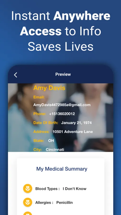 - Critical emergency medical information, such as allergies to medications and emergency contacts are available instantly to hospital staff.