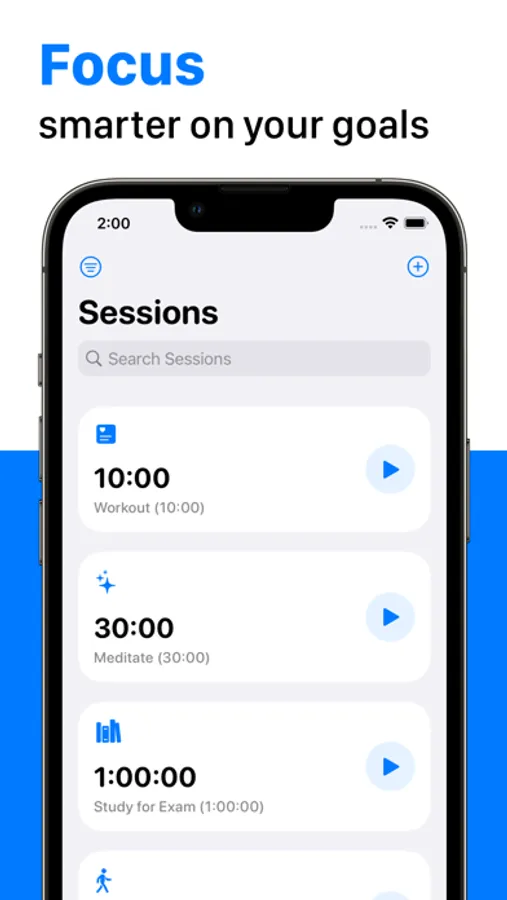 You can create a session for tasks like cooking, working out, or studying. Then break up your goal into steps or mini-goals.