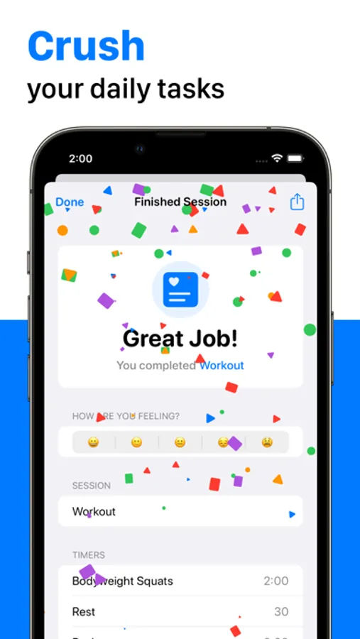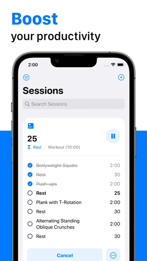 - Stay focused by running reusable multi-step timer sessions to achieve your goal.