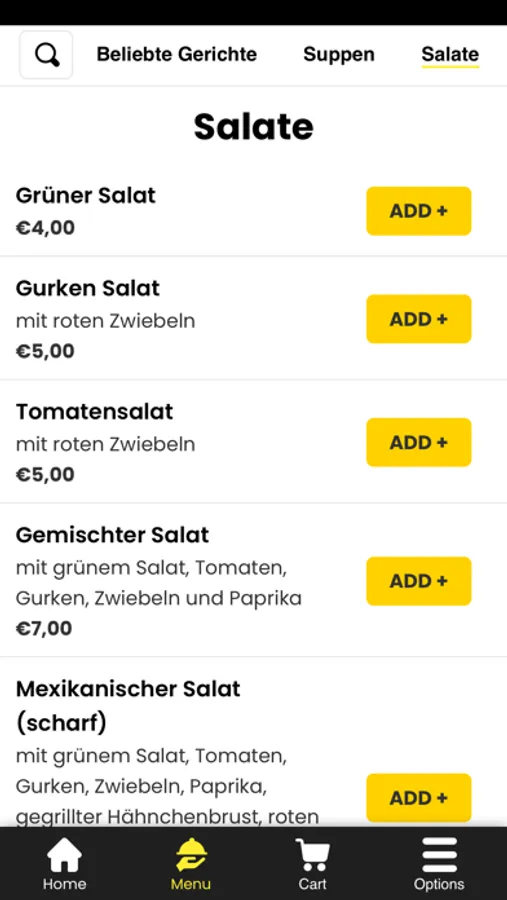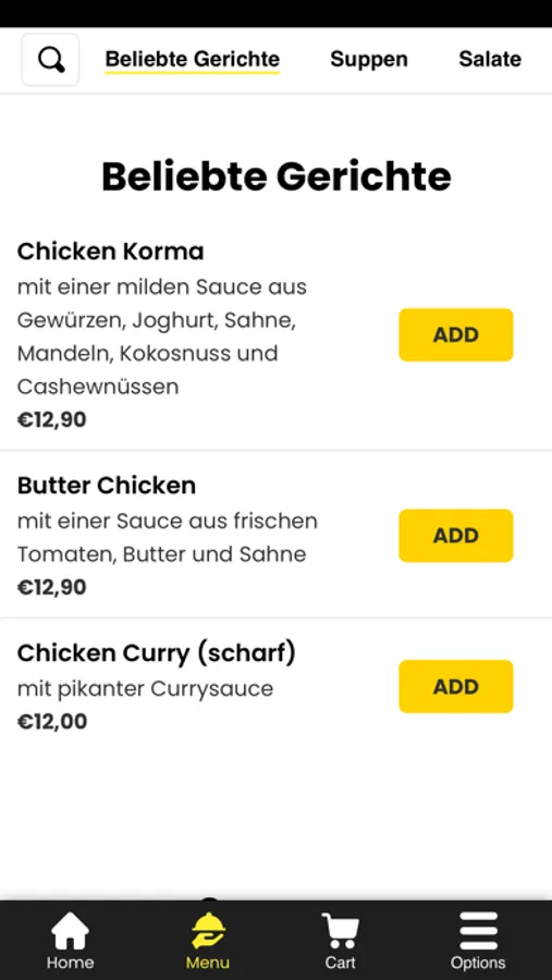 - Durchsuchen Sie die Speisekarte des Restaurants und sehen Sie sich alle anpassbaren Optionen im Voraus an