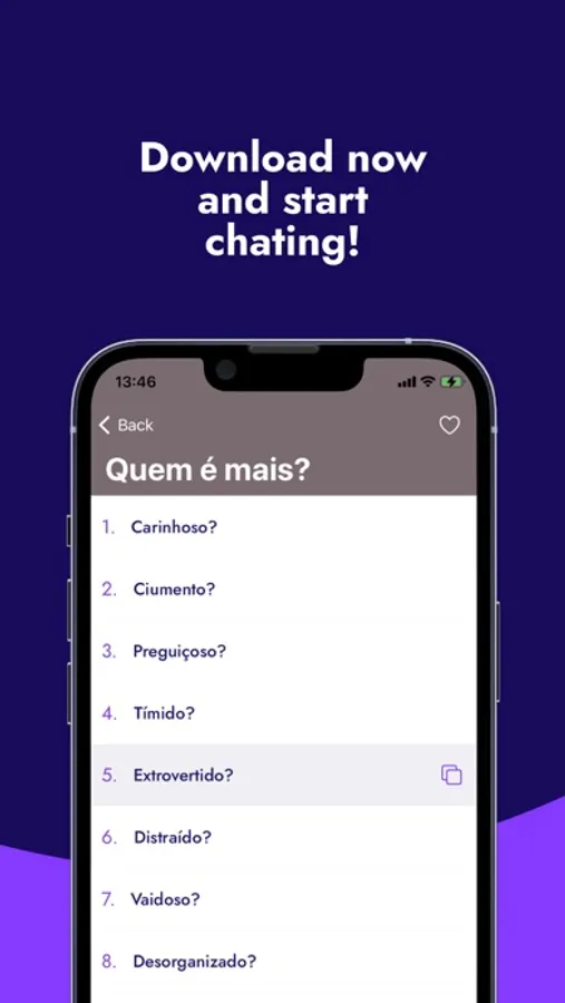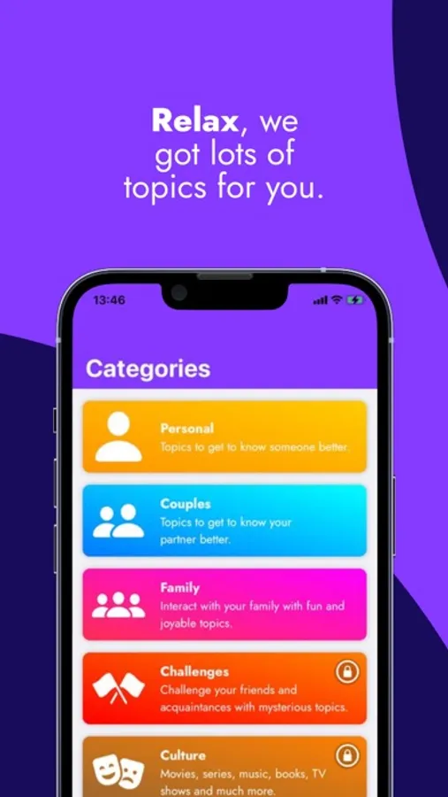 Pickup lines, tests and challenges are also available so that you make the most of your moments and have the best experience on interacting with people.