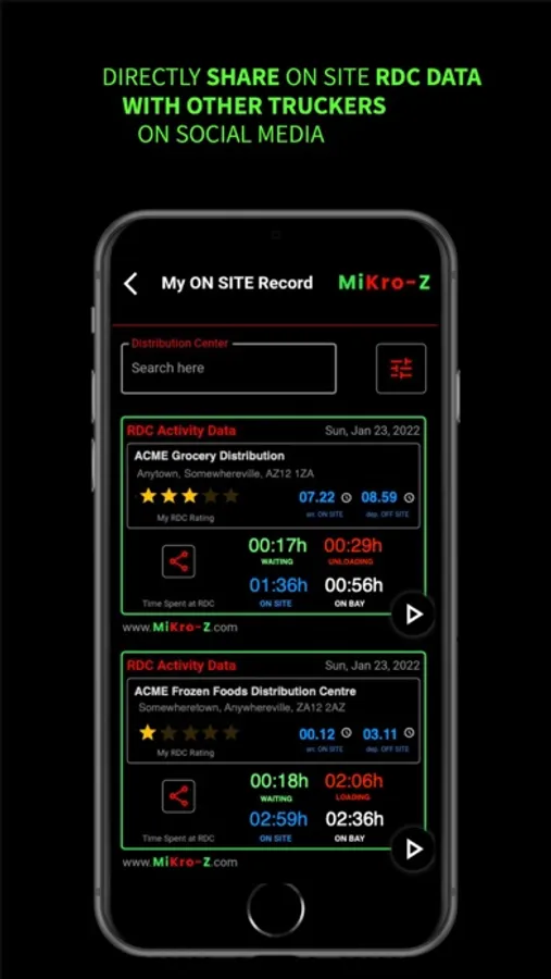- SHARE feature to circulate MiKro-Z ON SITE Distribution facility activity data with other truckers on social media