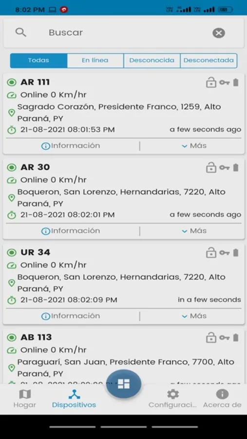 Consultar distancias recorridas y conocer los últimos eventos generados por los vehículos.