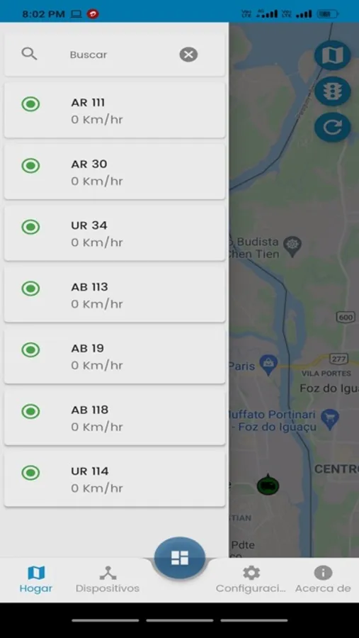 Vea en un mapa la ubicación de toda su flota, con vistas de mapa Standard Road, Transito, Satélite, e Híbrido entre los más destacados.