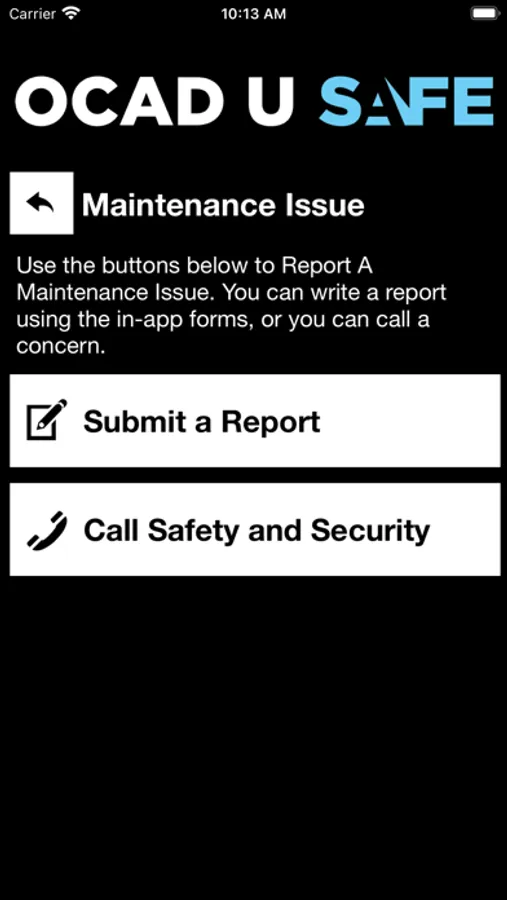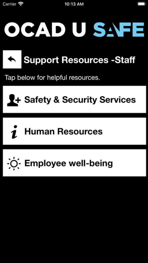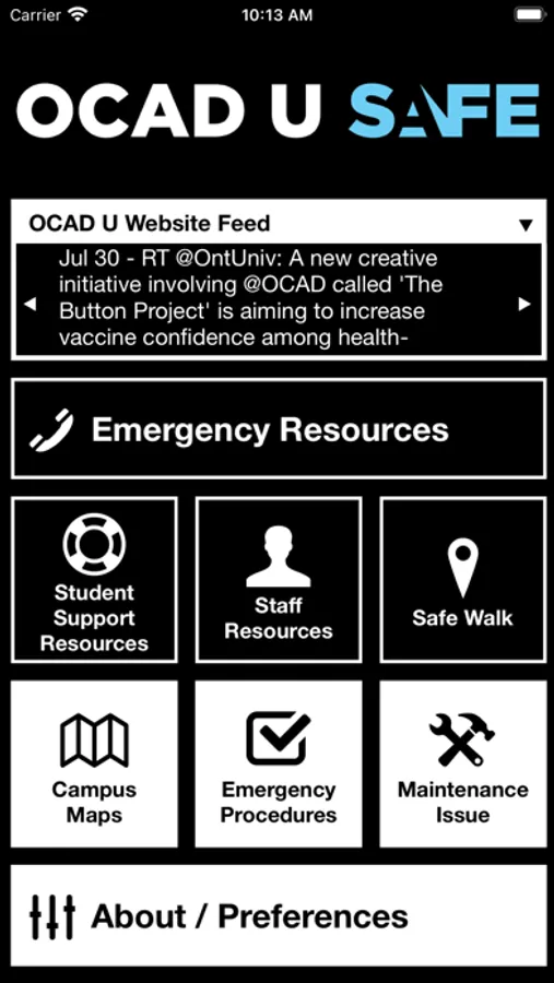 OCAD U SAFE is the official safety app of OCAD University. It is the only app that integrates with OCAD University's safety and security systems. Campus Safety has worked to develop a unique app that provides students, faculty and staff with added safety on the OCAD University campus. The app will send you important safety alerts and provide instant access to campus safety resources.
