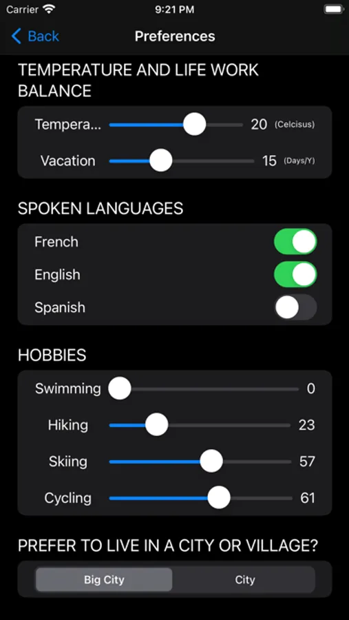 Do you want to immigrate to Australia, Canada or New Zealand or work in California or New York? Enter your preferences such as weather, hobbies, and language and get your personalised top cities. Get information, pictures, job tweets, tips and tricks.