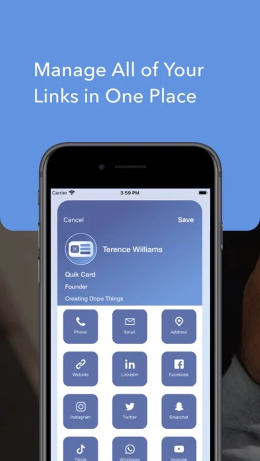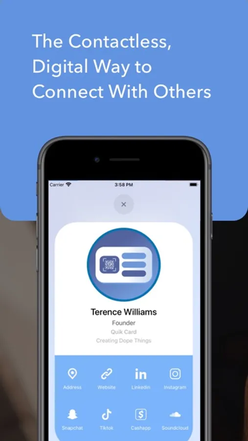With QuikCard, you can create and manage QR codes for all of your profiles, websites, and contact info. Connecting on TikTok, accepting payments on Cash App, and sharing your online store are now all possible from one app. Share your info for 15+ social apps within seconds.