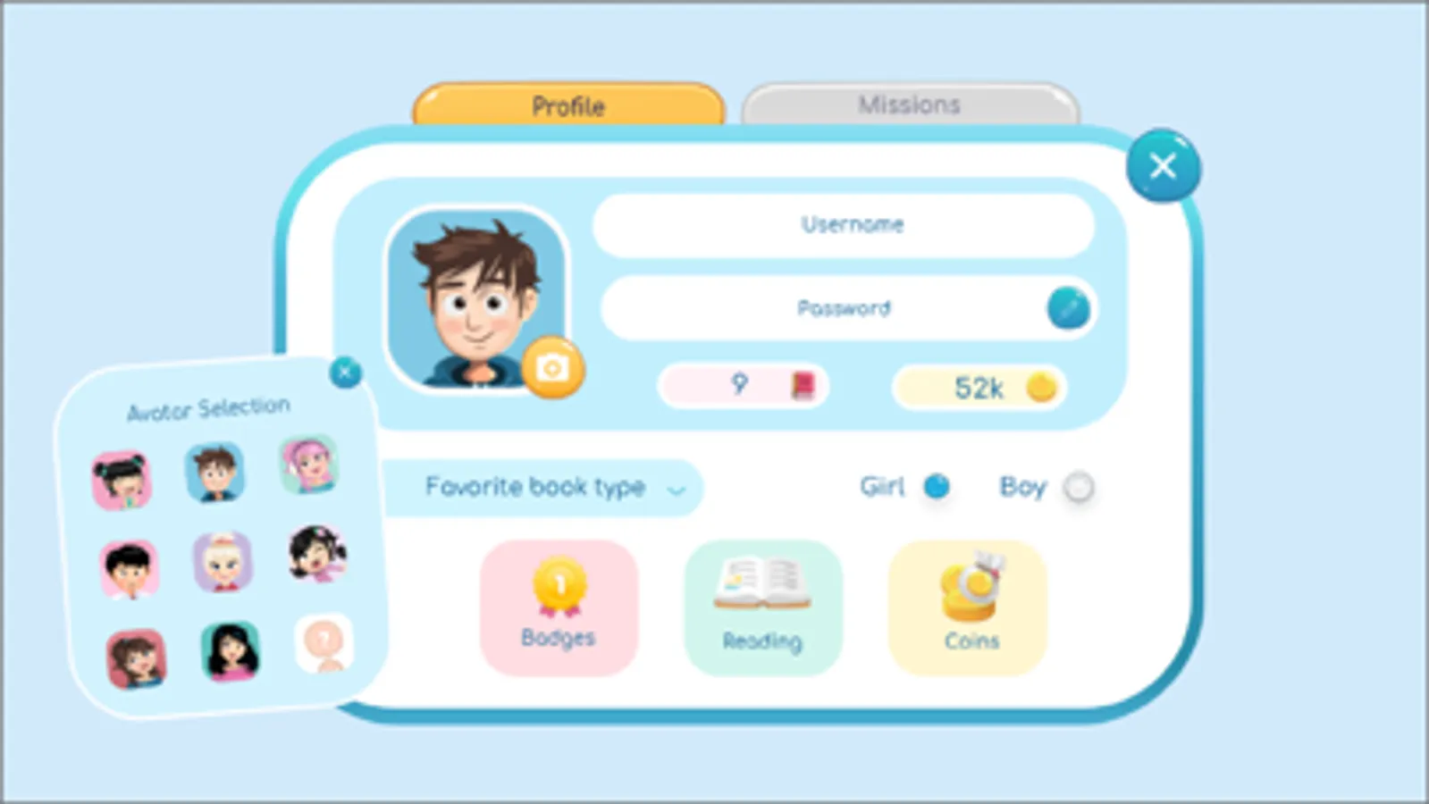 We added an aspect of gamification of reading to increase the motivation of children to complete the books. The more they read the more virtual missions are revealed and unlocked.