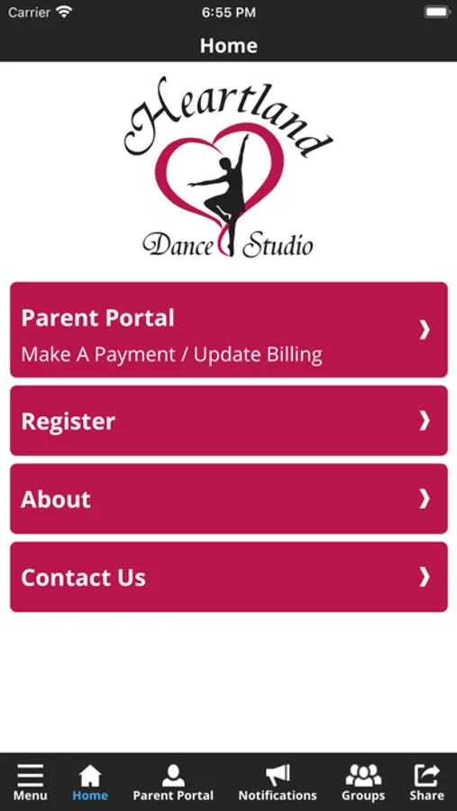 The Heartland Dance Studio app allows you to manage your account with ease, register for classes, parties and special events. You'll also receive important notifications about class changes, closings, registration openings, special announcements, and upcoming events.