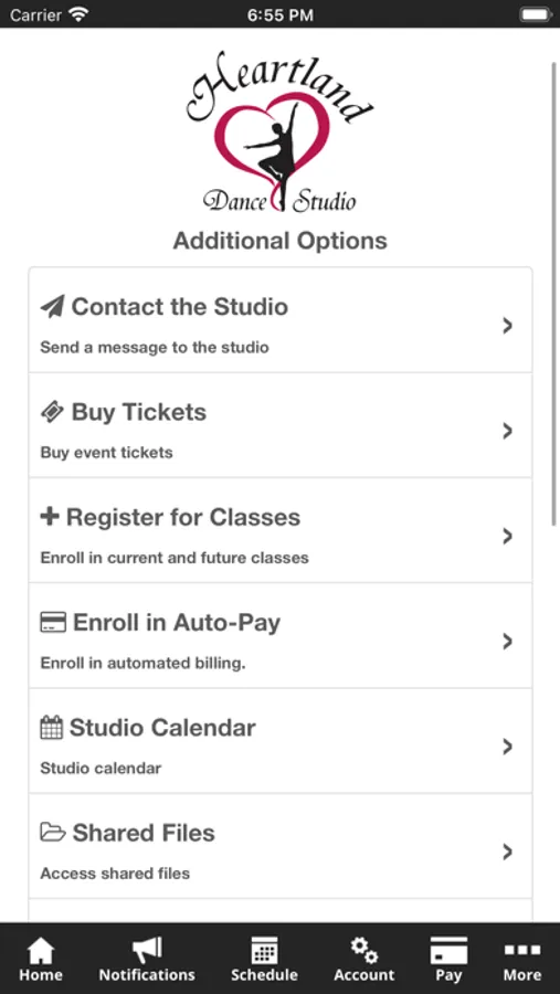 The Heartland Dance Studio app is an easy-to-use, on-the-go way to access everything Heartland Dance Studio has to offer right from your smartphone.