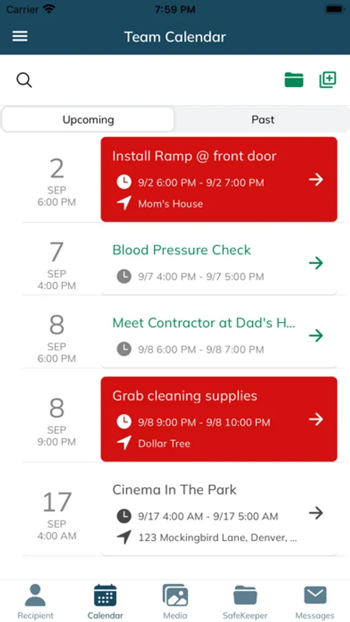 • Manage appointments, medicine dosages, exercise regimens, and other caregiving tasks