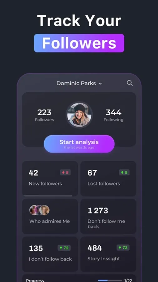 Reports: Followers Tracker+ IG is a profossional clean up and analysis tool for your Instagram accounts. Our APP provides professional and fast analysis reports for your Instagram, so that you can monitor the growth of followers and change of account data at any time.