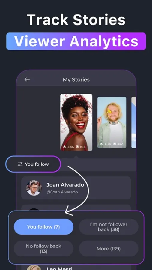 You can subscribe to "Reports: Followers Tracker+ IG" to all features and content offered for purchase within the app.