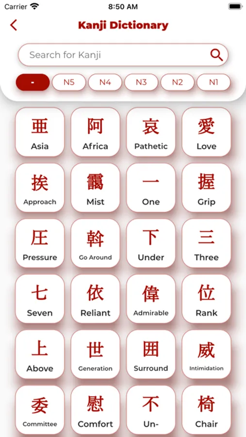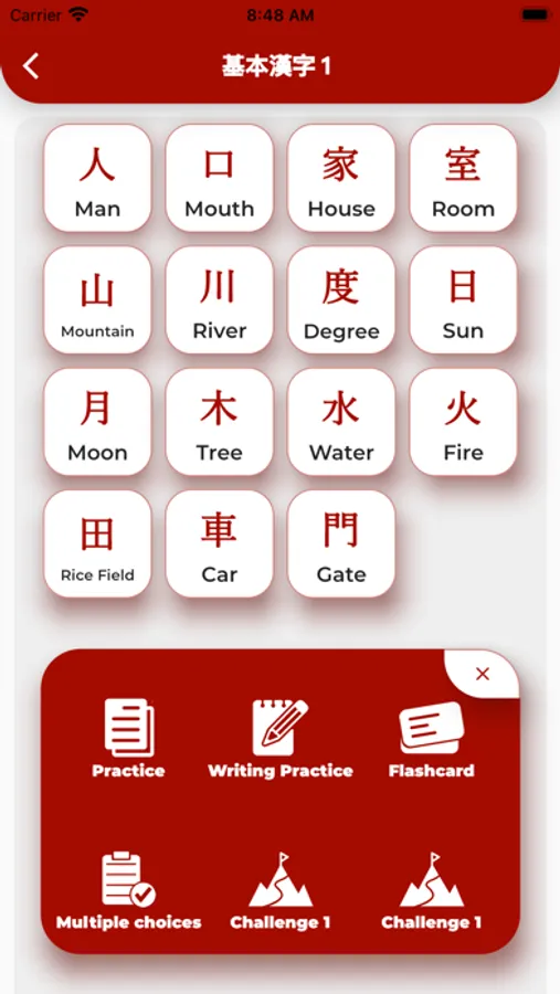 • Improve your kanji recognition by challenging yourself recognize right kanji with given meaning in limited time