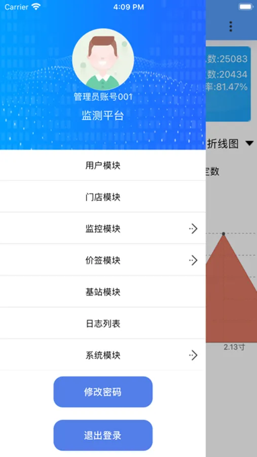 用来监测商店内的电子价签及其基站的情况,所属门店情况,门店用户数据.查看门店内的电子价签使用情况.查看提醒邮件,创建邮件接收人