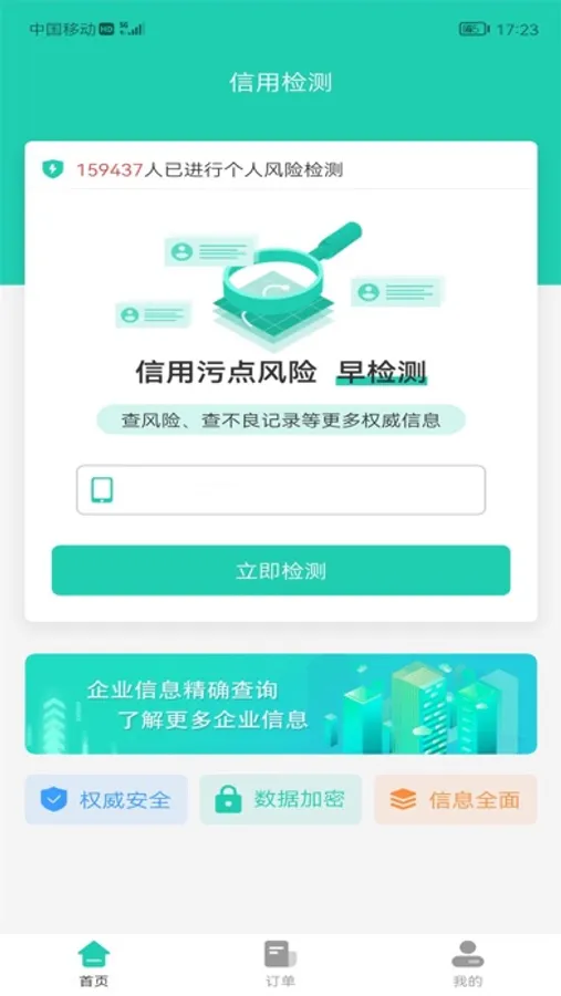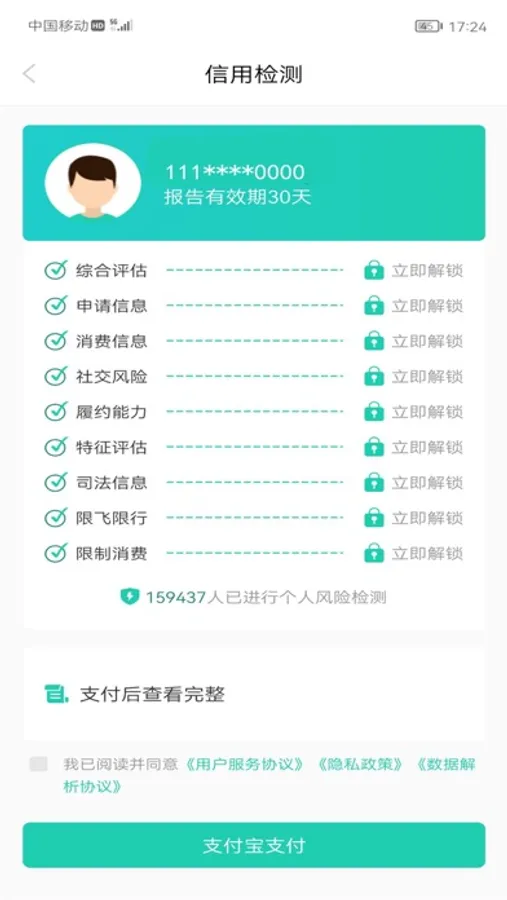 温馨提示:本软件并非中国人民银行征信中心软件。主要提供网贷黑名单检测,助您了解自身信用情况,规避信用风险,享受信用人生。
