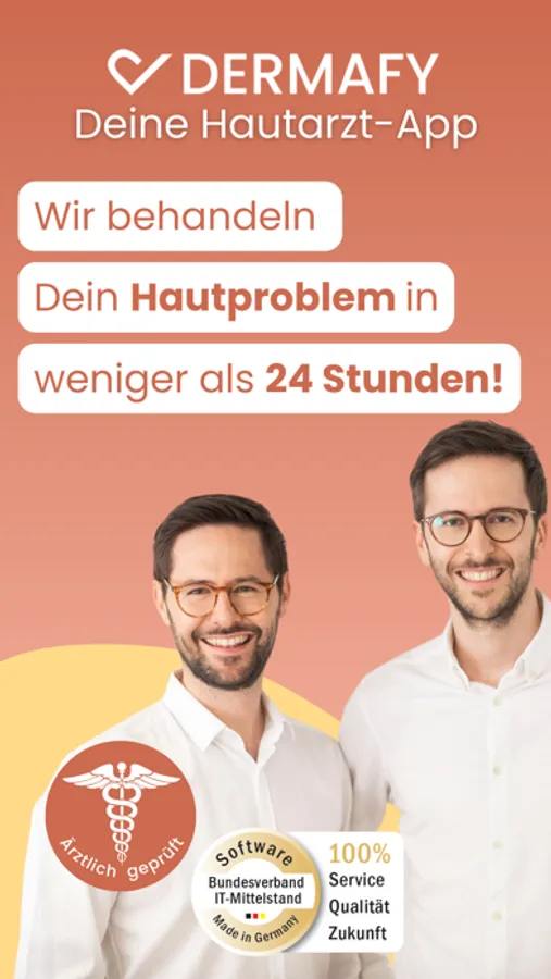 DERMAFY is backed by the team of Hautzentrum Dr. Pfeifer (rated 1.2 on the doctor portal Jameda, with the predicate "highly trustworthy"). Brothers Frederic and Sebastian are passionate dermatologists. They often received photos from their circle of acquaintances, asking for initial assessments of skin problems. This led to the idea of creating a simple skin check app.
